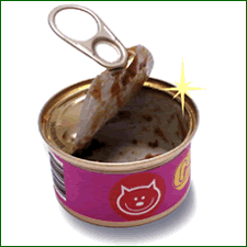 blikken met kattenvoer voor een zwarte kat. Open het